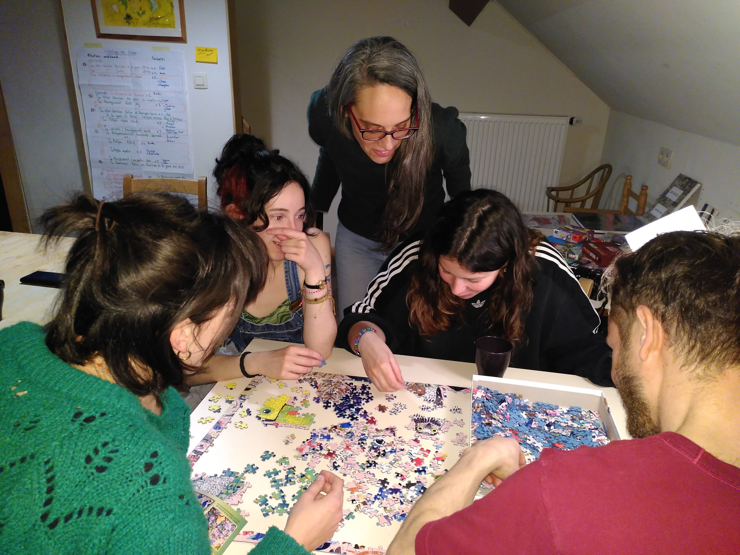 Het werd een speels, sportief, huiselijk en gewoon gezellig samenzijn: een goede babbel tijdens een mooie wandeling, samen een 1000-stukjes puzzel leggen, een lievelingsboek van een collega leren kennen, danspassen tijdens een plaatselijk folkbal, nieuwsgierig en open uitwisselen over ieders culturele waarden die meespelen in het leven of samen koken. Dat helpt om elkaar beter te leren kennen en aan te vullen in onze dagelijkse opdrachten en ontmoetingen, en om zich gesteund te weten bij de grote uitdagingen die op ons pad komen als volontair.