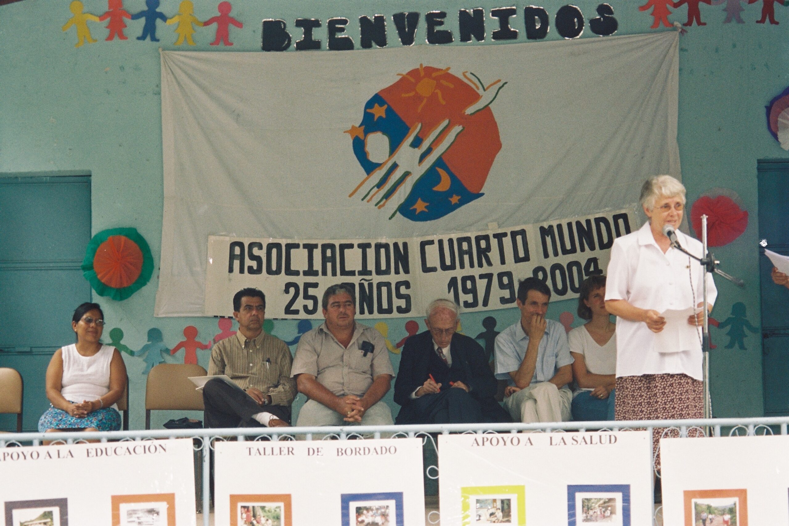 Guatemala: in 2004, ter gelegenheid van het 25-jarig bestaan in Guatemala, waar de beweging in 1979 is begonnen. Mieke, afgevaardigde voor de regio, neemt het woord