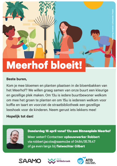 Om 13u is iedere buurtbewoner welkom om mee het groen te planten. Van 13u30 u tot 15u voorzien Ayan en Katia van de straatbibliotheek van ATD Vierde Wereld een gezellige leeshoek voor de kinderen en om 15u is iedereen welkom voor koffie en taart! Neem gerust iets lekkers mee!